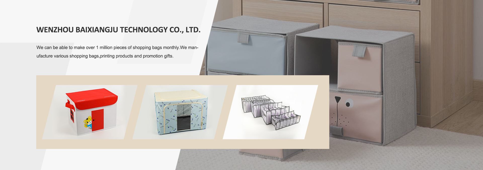 - Wenzhou Baixiangju Technology Co., Ltd. sa zaoberá obchodom s nákupnými taškami a tepelnoizolačnými taškami.